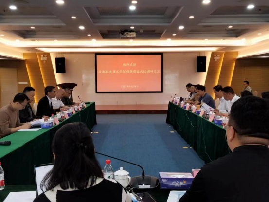 4月26日下午,成都职业技术学院蒲松林副院长一行来我校调研交流。我校党委副书记、纪委书记蔡东宝与相关部门人员参与调研交流活动。