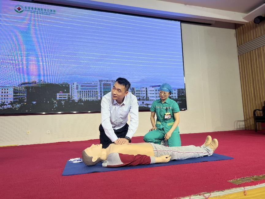 为提高教职工的健康意识和基本应急救护技能,2023年10月12日,后勤处、工会组织邀请东莞市中西医结合医院心内科郑壁伟主任、急诊科汤日祥主任、急诊科叶婷芳护士长来我院举行健康知识讲座及急救技能培训,现场进行胸痛、心梗、高血压、冠心病,海姆立克法急救及模型操作示范。