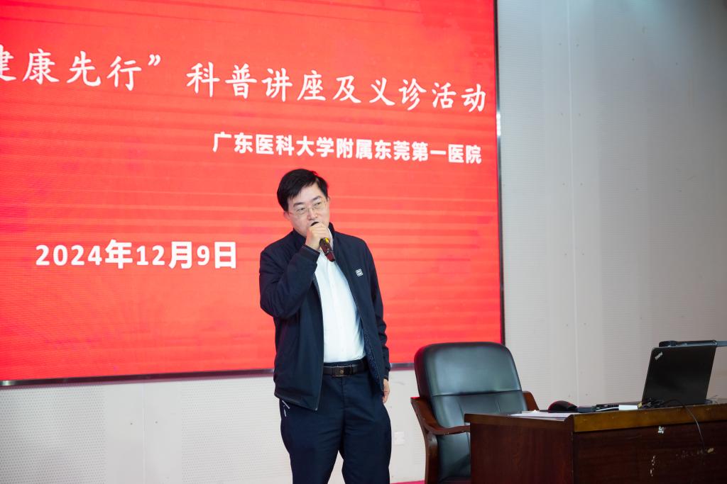 讲座开始前,后勤管理处负责人余忠信同志致欢迎辞。他阐述了此次活动的目的与意义,希望在冬天来临之际,为广大师生送来暖心的服务,提供更加专业的健康指导,并表示后勤管理处将积极做好各项健康服务工作,为全体师生的健康保驾护航。广东医科大学附属东莞第一医院副院长林成辉随后发表讲话,他表示广东医科大学附属东莞第一医院将利用好优质的医疗资源进一步守护广大师生的身体健康。