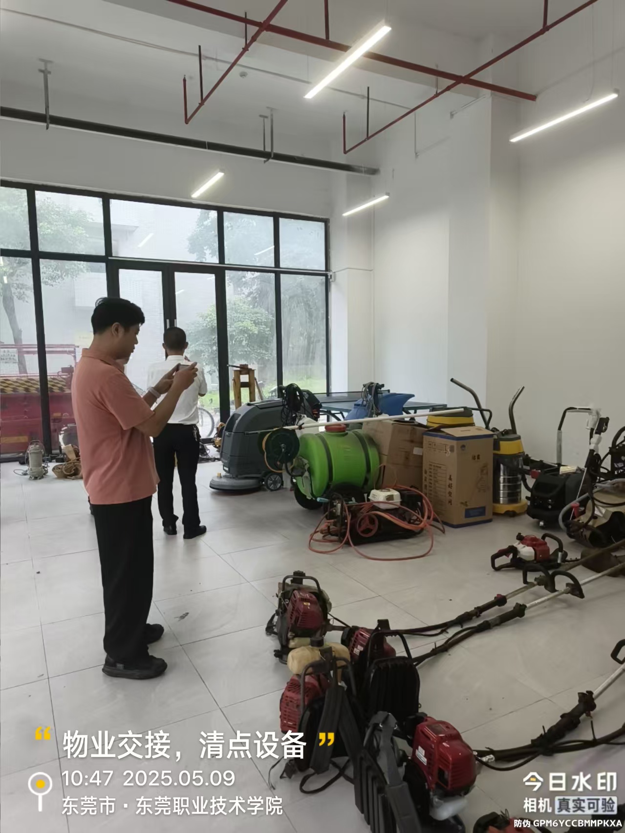 2025年5月9日上午9:30,后勤管理处在行政楼A321会议室召开松山湖校区物业管理服务项目交接工作会议,后勤管理处、学生处等物业监管单位有关负责人和工作人员,广州粤华物业有限公司、时代东康城市服务(广州)有限公司项目团队共同出席会议。