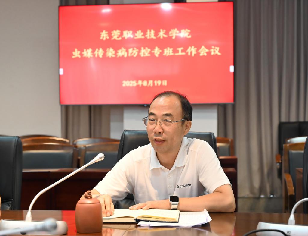 会上,后勤处处长李浩泉对《东莞职业技术学院2025年秋季开学前后虫媒传染病防控工作方案》进行了详细解读,并汇报了当前学校虫媒传染病防控工作进展情况。校党委委员、党委宣传部部长杨洋就进一步做好基孔肯雅热等虫媒传染病疫情防控工作做了专题研究部署。