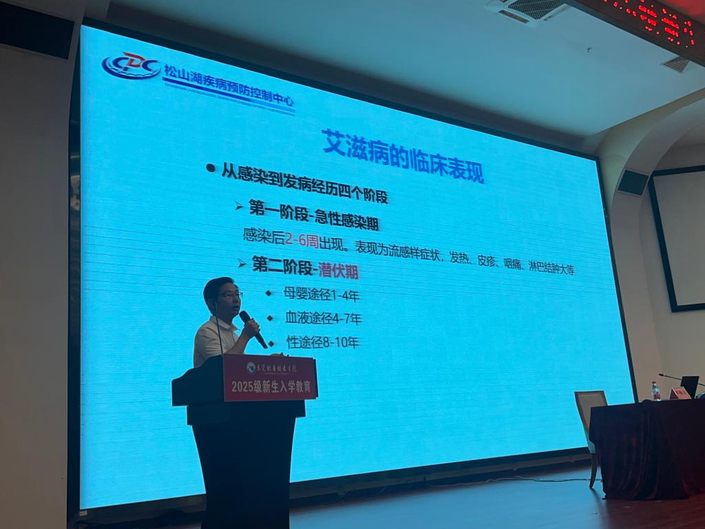 为筑牢校园艾滋病防控安全防线,提升广大师生对艾滋病的科学认知和自我防护能力,营造健康、安全、和谐的校园环境。学校后勤管理处邀请松山湖疾控中心邵锦炜副主任携艾防专家一行2人,于2025年9月20日在学校培训楼进行宣传科普教育,讲座以“青春要设防、防结核,虫媒传染病”三方面内容进行宣讲。