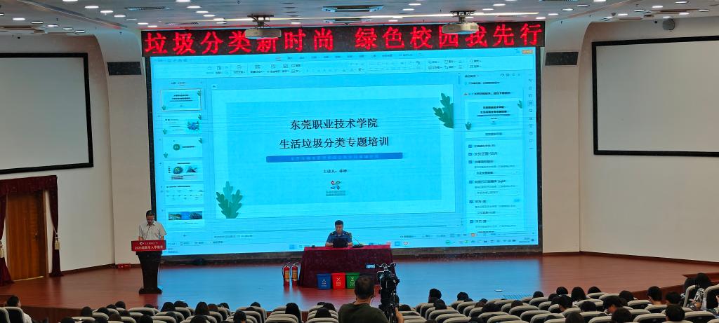 本次讲座邀请东莞市南城街道生活垃圾分类宣讲员、东莞市“莞香花”垃圾分类讲师、南城街道学习贯彻党的二十大精神莞邑百姓宣讲团成员、南城教育管理中心“大思政课”特聘讲师团讲师林彬老师担任主讲。林彬老师凭借丰富的垃圾分类宣传经验和专业的理论知识,为在场新生带来了一场内容翔实、生动有趣的精彩分享。讲座过程中,同学们认真聆听,积极互动,现场学习氛围浓厚。