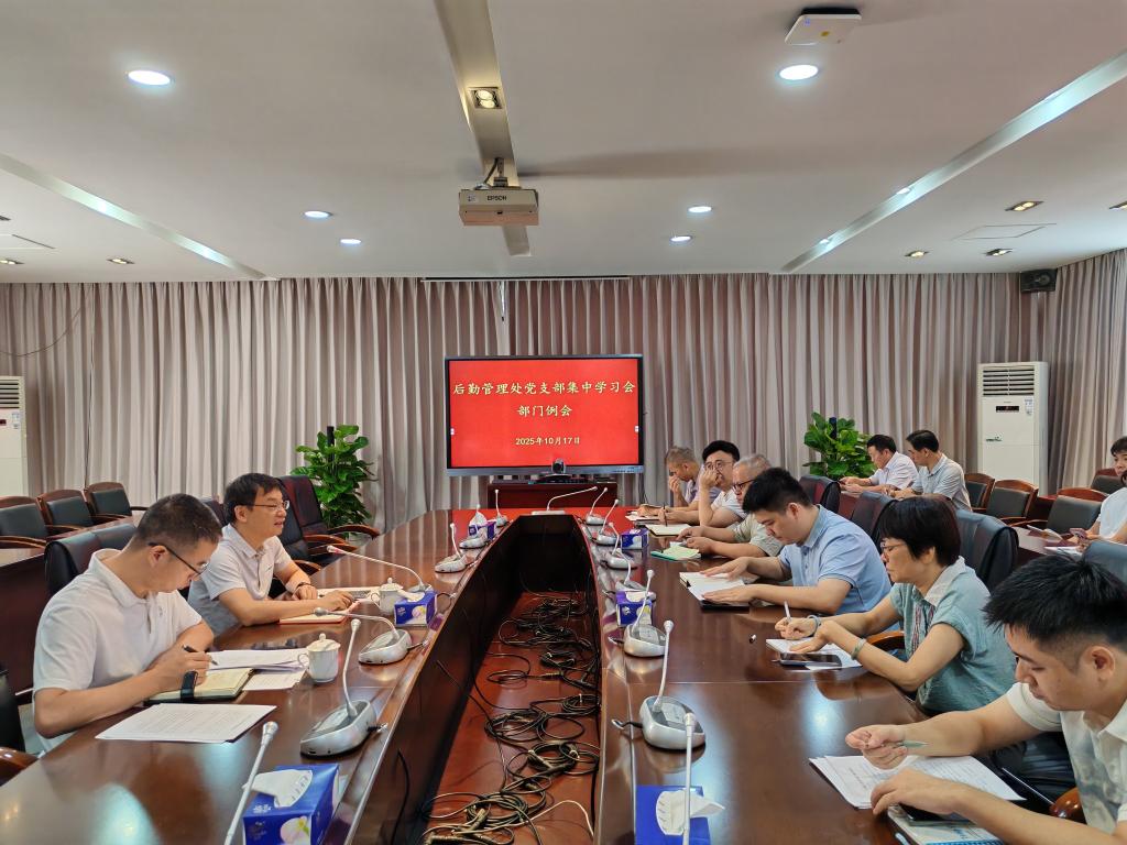 10月17日上午10:00,后勤管理处党支部在立德楼B415会议室开展2025年度10月集中学习活动,本次学习活动由后勤管理处处长李浩泉同志主持,后勤管理处全体教职工参加。